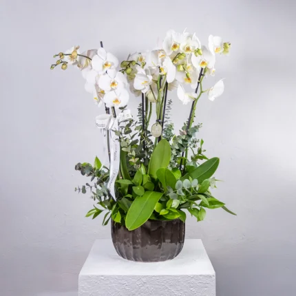 Seramik Saksıda 8 Dal Beyaz Orkide