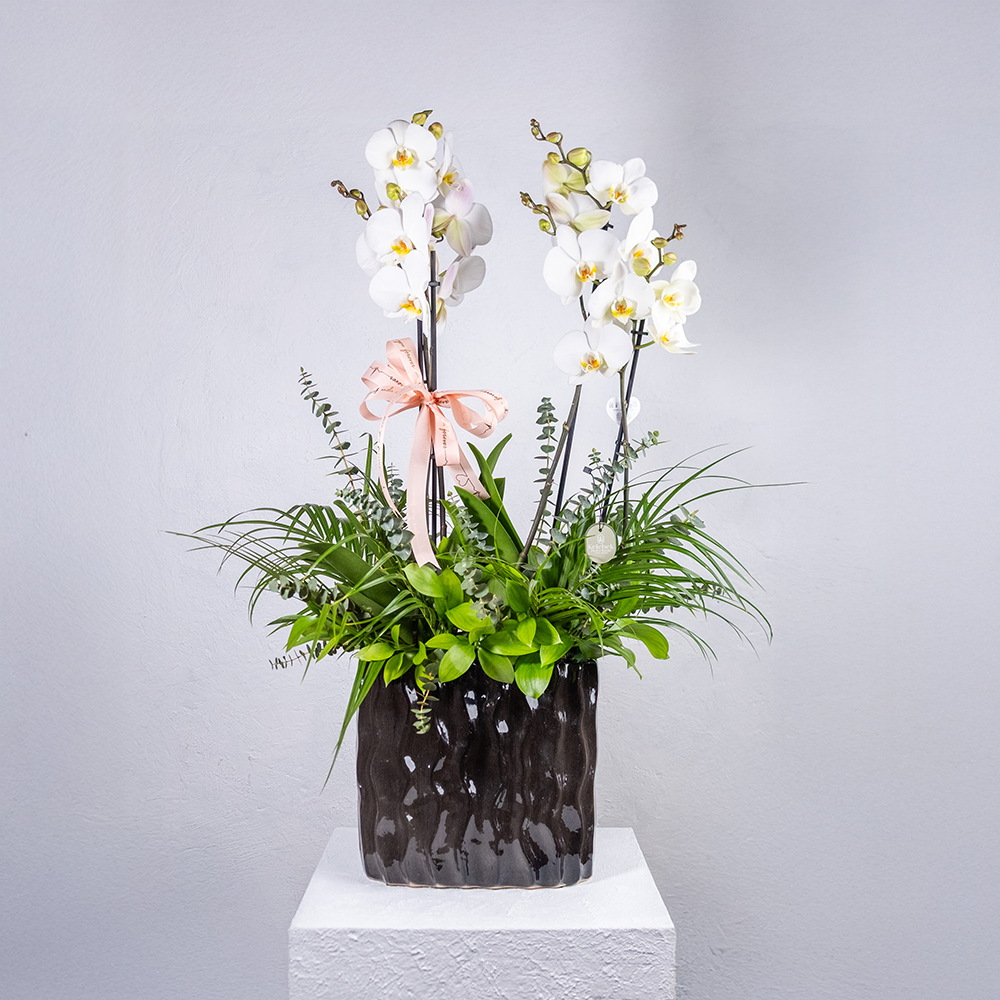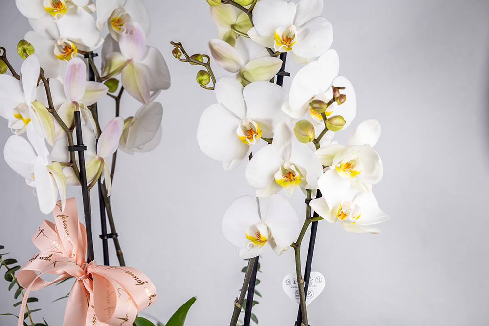 Seramik Saksıda 4 Dal Beyaz Renk Orkide